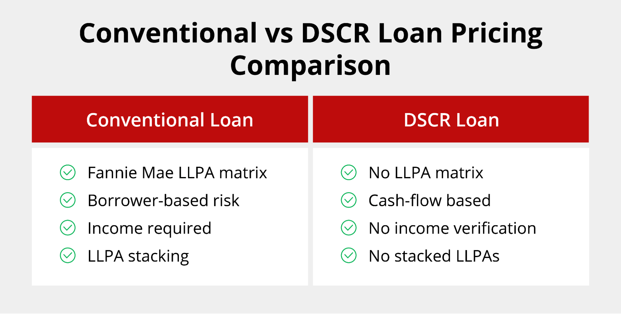 - DSCR loans don’t follow the Fannie Mae LLPA matrix, which can make them more competitive for investors.