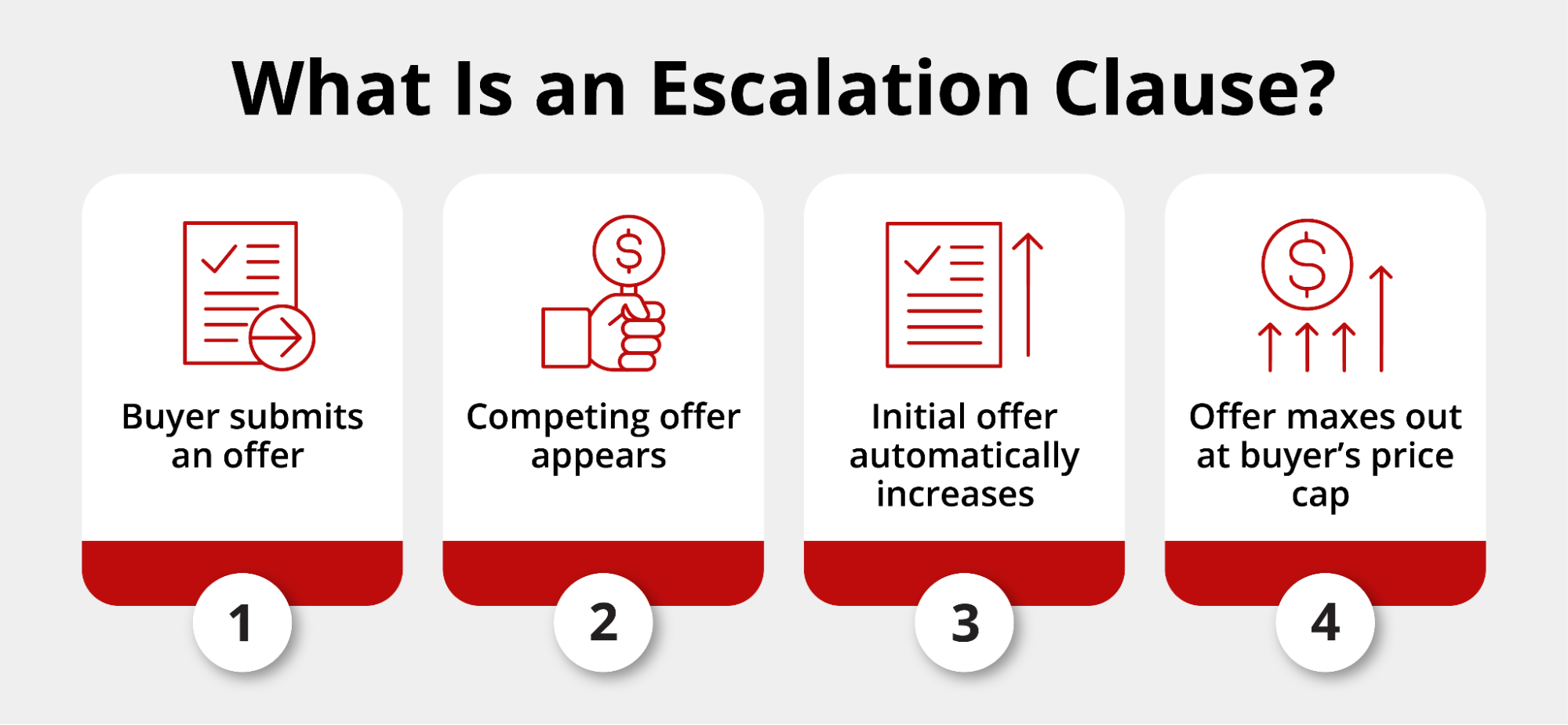 - An escalation clause automatically raises your offer when competing bids come in, helping you stay competitive without starting with your highest price.