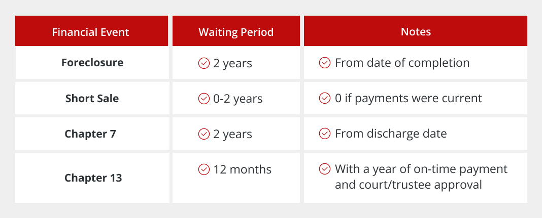 Waiting periods help lenders assess risk and give borrowers time to rebuild financial stability. These events often indicate temporary financial stress, and the waiting period allows time for credit recovery, income stabilization, and the development of better financial management habits. It's essentially a cooling-off period that benefits both borrowers and lenders.
